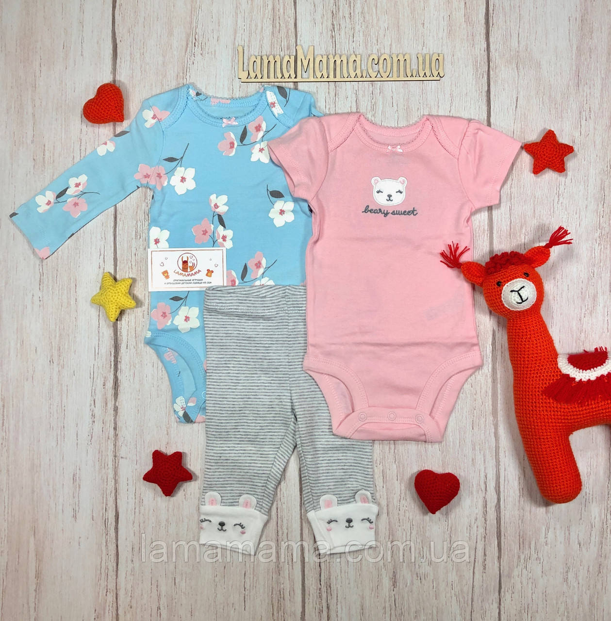 Надзвичайно ніжний комплект Ведмедик від Картерс закохає вас у себе з першого погляду. 2 боді в комплекті (з коротким і довгим рукавом) плюс штанці можуть зробити 2 різних стильних образи, що дуже зручно.