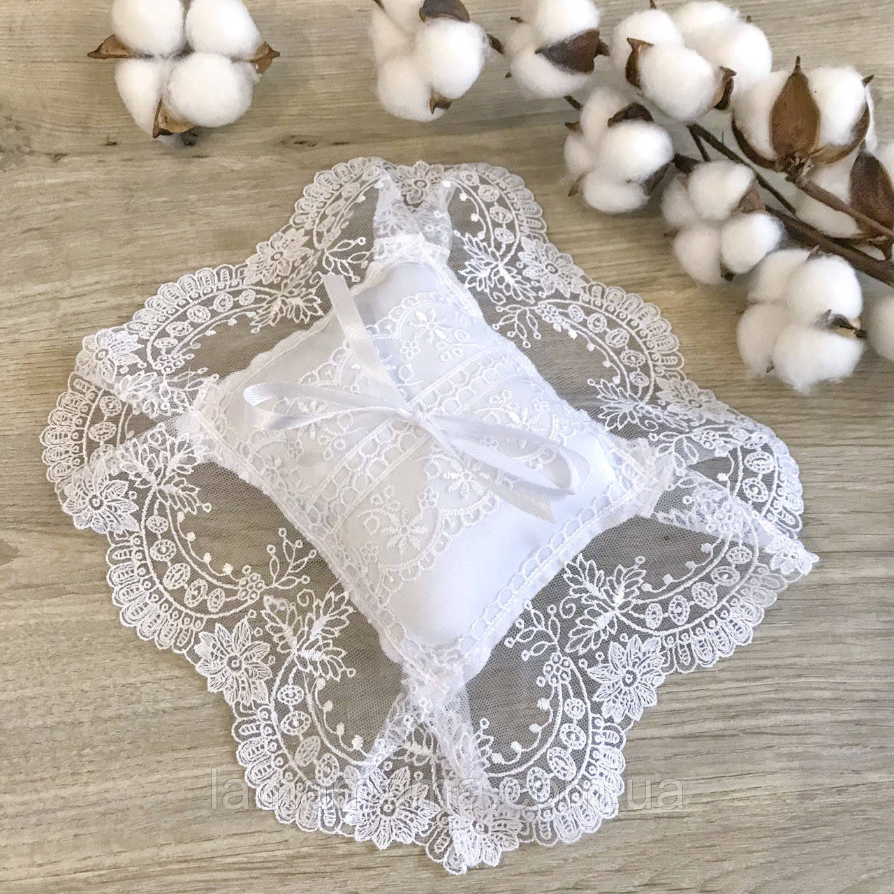 Подушечка Світлинка від BetiS пошита з атласу, куліра та дуже гарного мережива.
