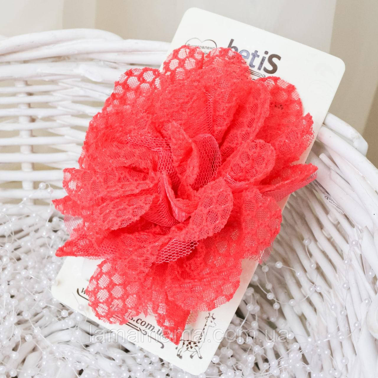 Аксесуар на тонкій гумці, має об'ємну квіточку з мережива діаметром близько 12 см.