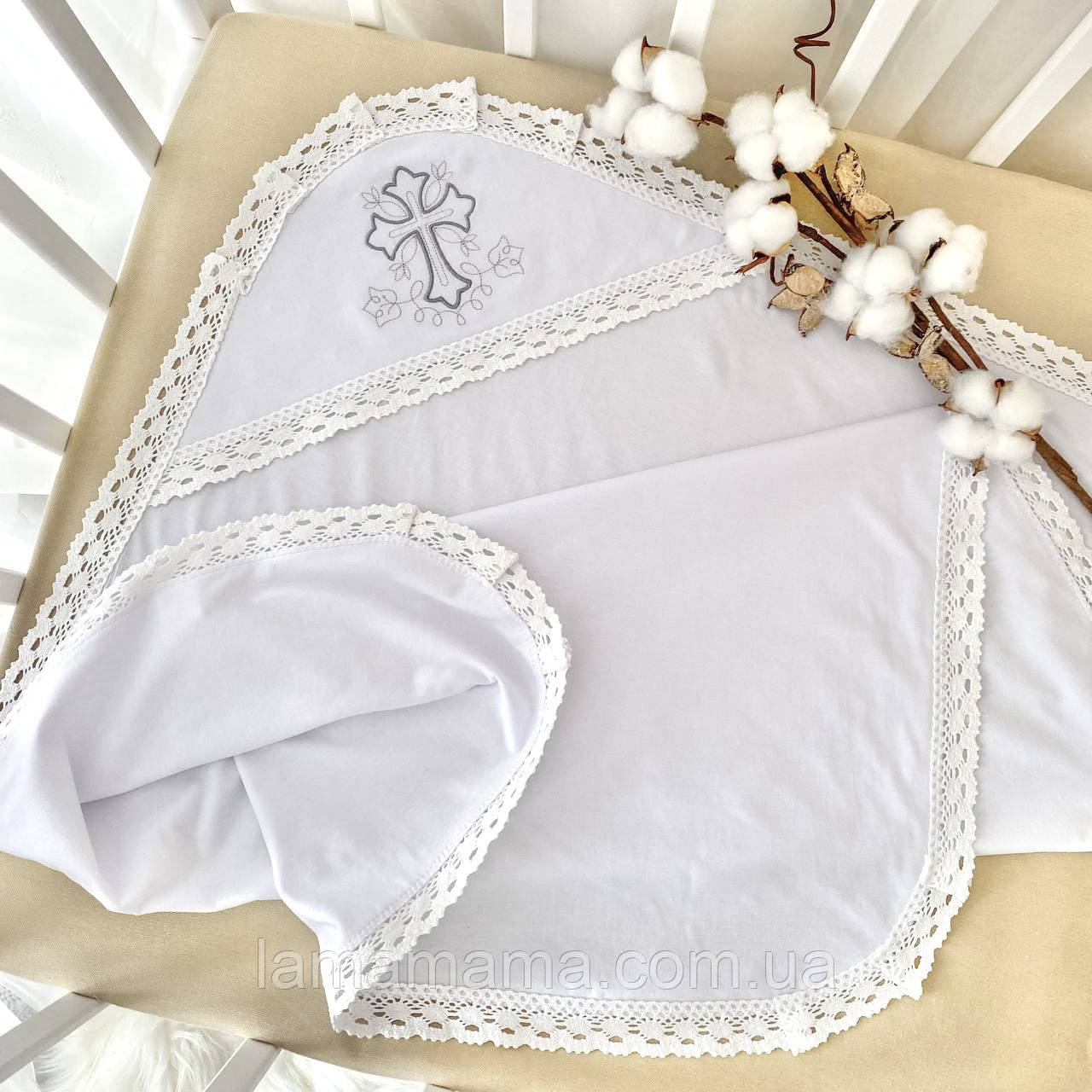 Крижма трикотажна для хрещення "Чарівний янгол - 1" Кулір Білий/Срібло 75х80 см Betis
