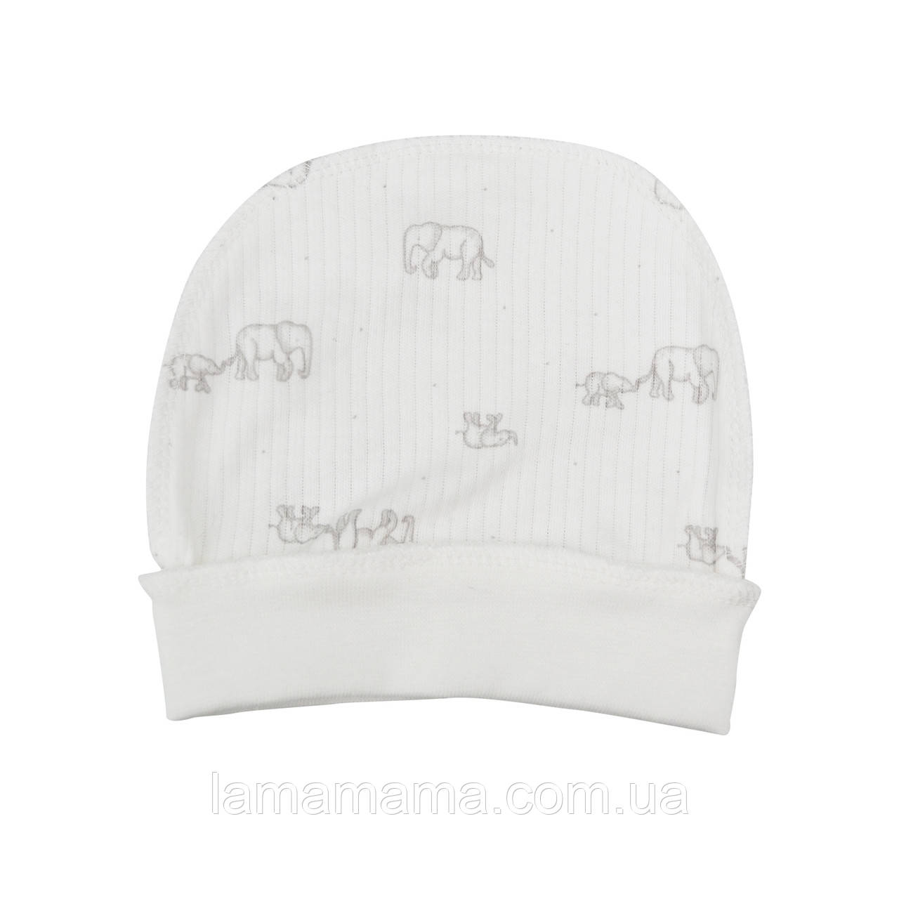 Бавовняна трикотажна шапочка із зовнішніми швами для новонароджених Слоненята Молочний Інтерлок-рубчик Minikin